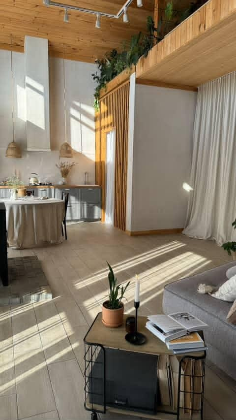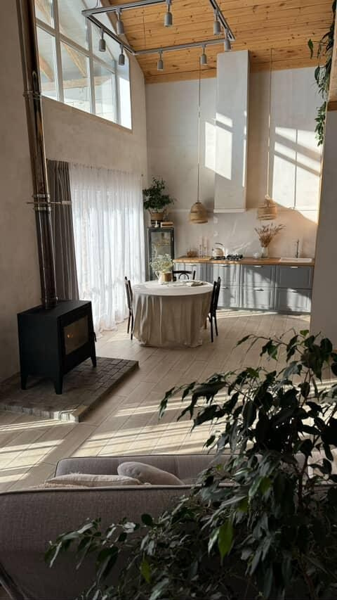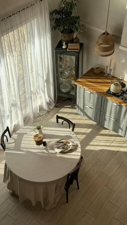 Уютная фотостудия в домашнем стиле. Находится в отдельном жилом домике в СНТ в Солнечном. Представляет собой кухню и гостиную с панорамными окнами.