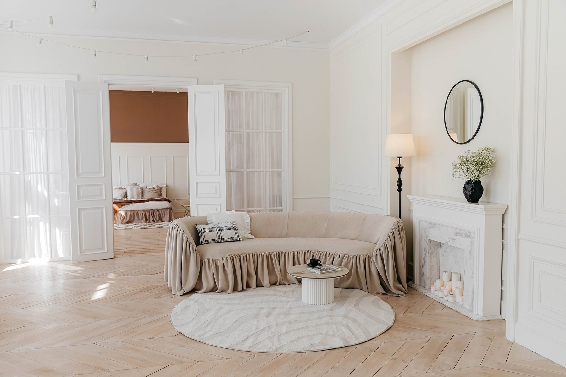 Большая светлая фотостудия в классическом европейском — примерно 100 кв. м. Многоплановое пространство, разделенное на две части — гостиная и спальня с кровать, для уютных семейных съемок. Идеально подходит для съемок больших семей.