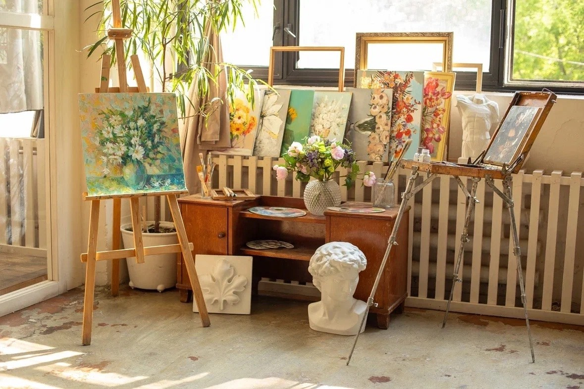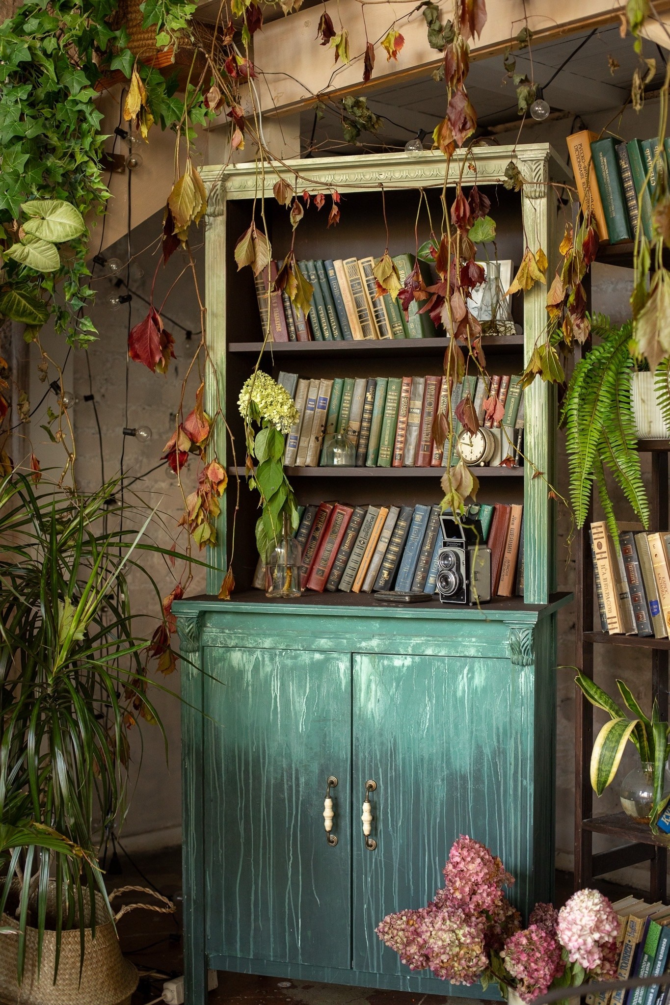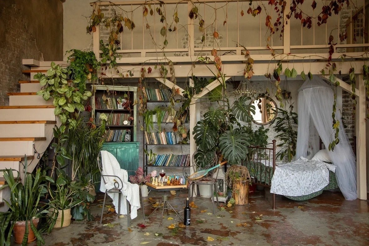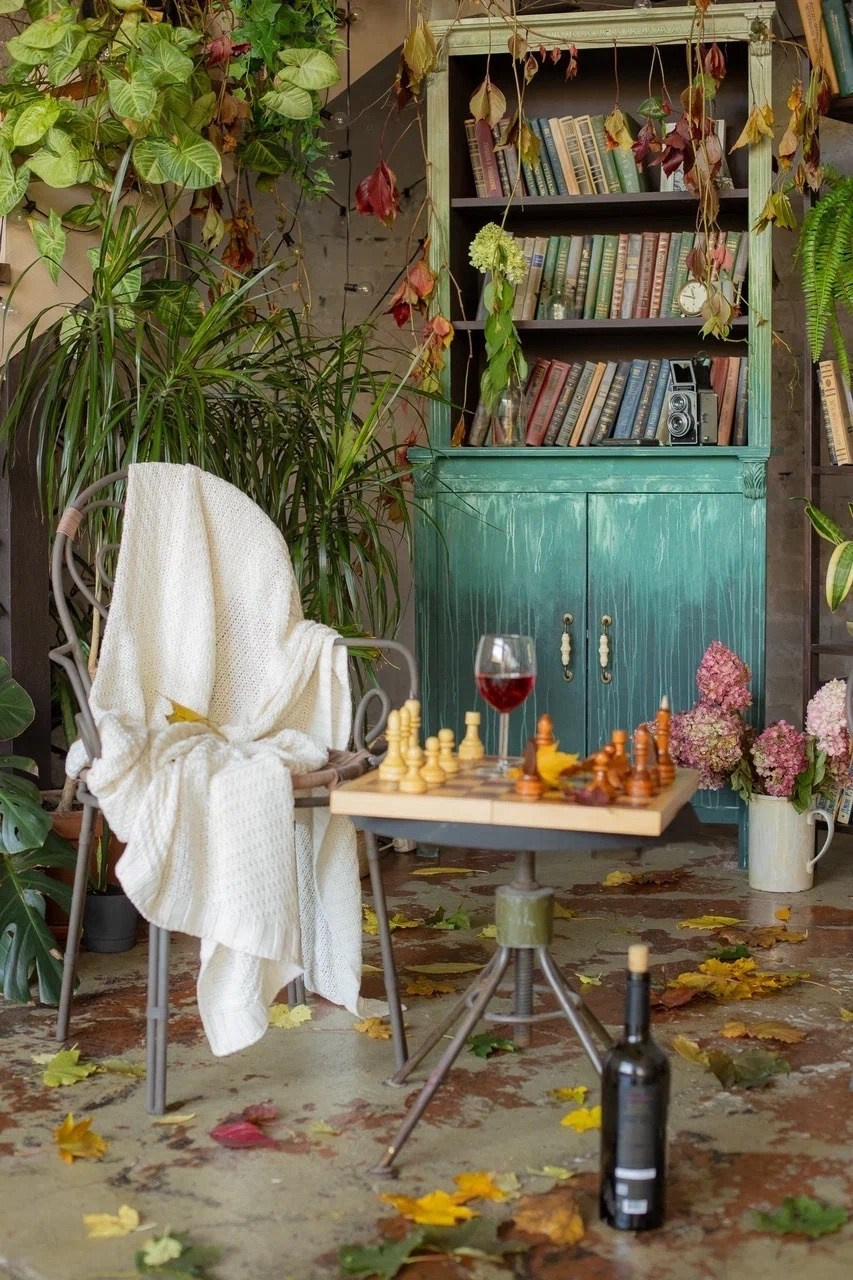 Зал площадью 85 кв. м. поделен на две части. Одна часть в темном шоколадном цвете с лестницей. Вторая часть — часть светлая с творческим уголком и старинным шкафом. Зал-трансформер — вся мебель легко передвигается за счет чего можно создавать большое количество разнообразных и интересных локаций! Идеален для съемки контента, индивидуальных съемок в темном ключе, небольших семейных съемок.